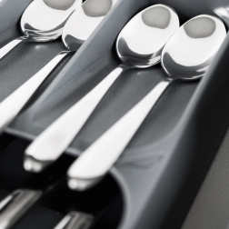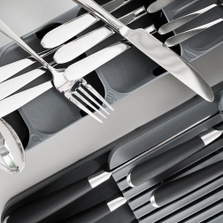Chytré, stupňovité usporiadanie udržiava lyžice, vidličky a nože oddelené, ľahko dostupné a šetrí priestor v zásuvke.