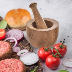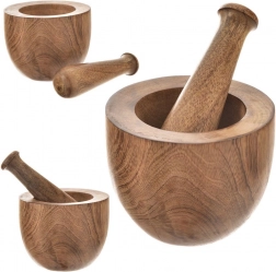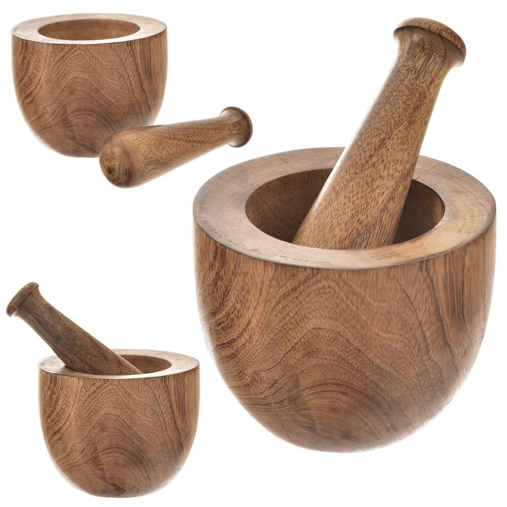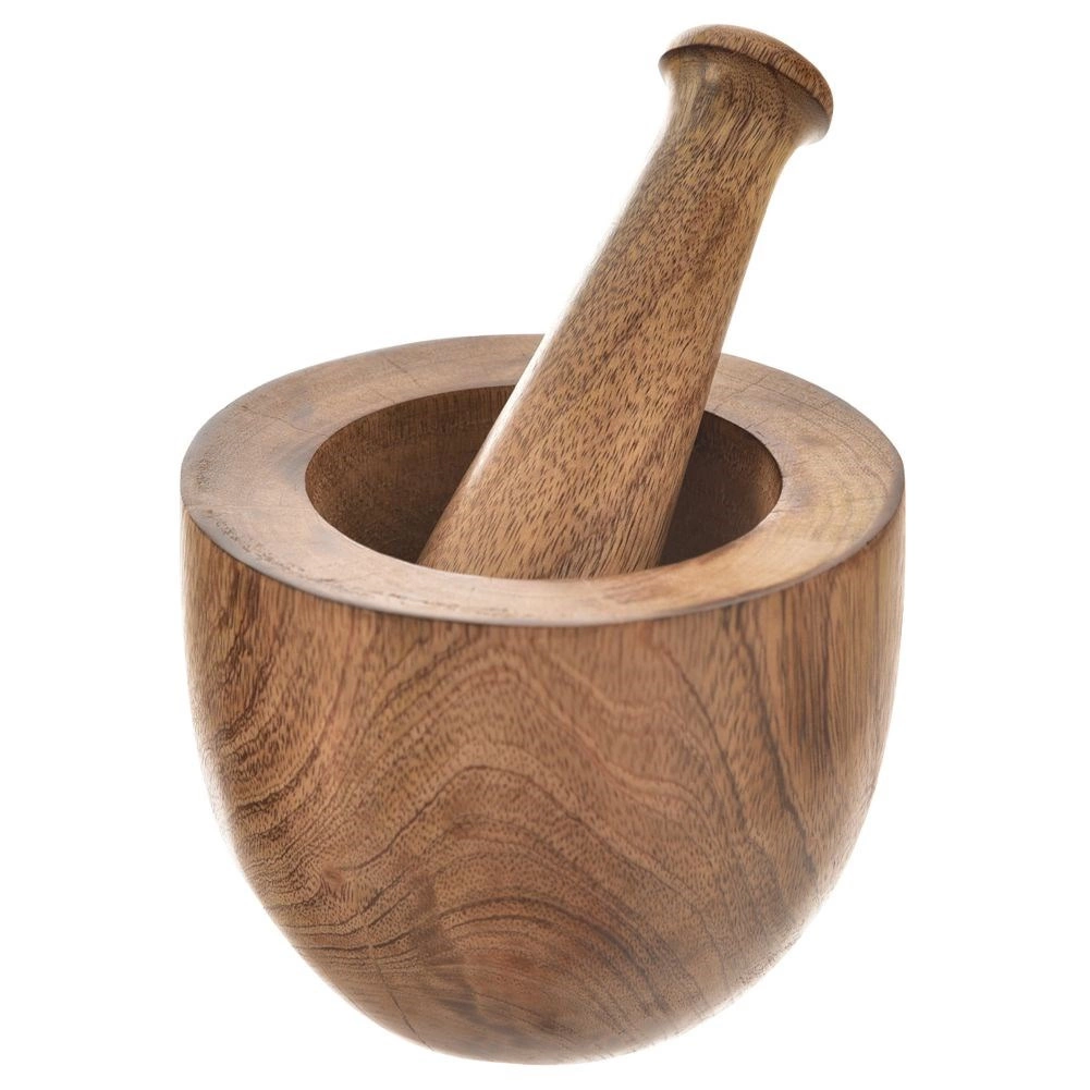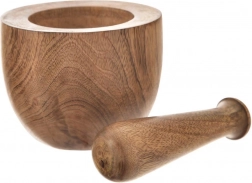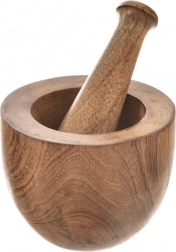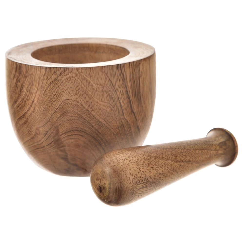 Robustný drevený mažiari z mangového dreva s ergonomickým tĺčikom na ľahké drvenie a mletie byliniek, korenín, orechov a semien. Prírodný materiál je odolný, hygienický a ekologický, nemleštěný vnútorný povrch misy zabezpečuje lepší účinok drvenia a plnšie uvoľnenie arómy pre dokonale voňavé zmesi a domáce pesto.