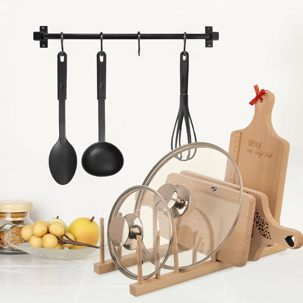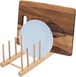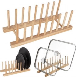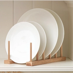 Usporiadajte pokrievky, plytké aj hlboké taniere a krájacie dosky prehľadne na jednom mieste. Drevený stojan s ôsmimi pozíciami udržiava riady vo zvislej polohe, takže sú ihneď po ruke, lepšie schnú a neprenáša sa na ne vlhkosť. Minimalistický vzhľad a prírodná farba ľahko zapadnú do akéhokoľvek kuchynského štýlu.