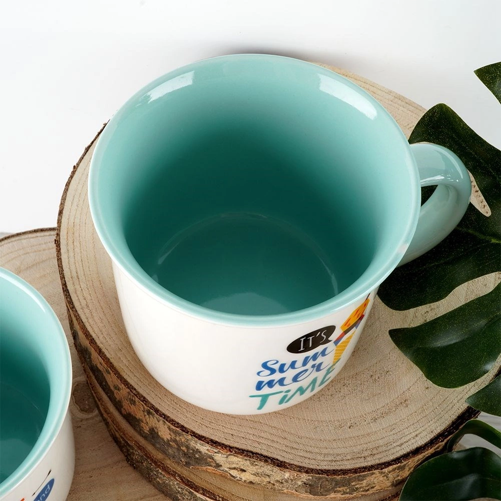 Užite si obľúbený nápoj v elegantnom hrnčeku z kvalitného porcelánu. Kombinácia bielej farby s letným motívom a mätovým vnútrom dodá stolovaniu svieži nádych. Hrnček sa vďaka ergonomickému uchu pohodlne drží a skvele sa hodí na každodenné používanie.