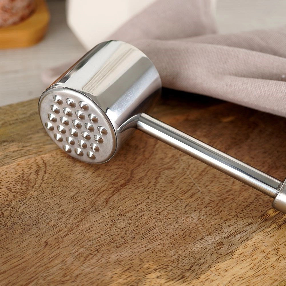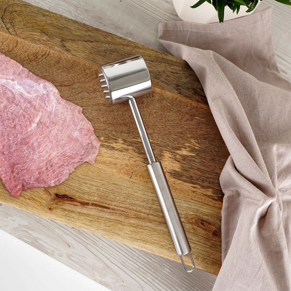 Vysoko odolná nehrdzavejúca oceľ zaisťuje dlhú životnosť, hygienu a jednoduché čistenie v umývačke. Tenderizér sa hodí na hovädzie, bravčové, hydinu aj ryby a poslúži aj na drvenie orechov či ľadu. Očko na konci rukoväti umožňuje praktické zavesenie a skladovanie.
