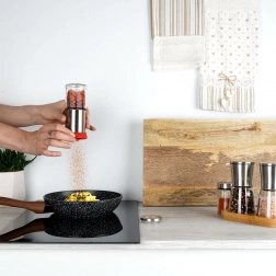 Elegantné kovové telo sa pohodlne drží, protišmykový prvok zabezpečuje istý úchop a ľahké mletie aj jednou rukou. Praktické viečko chráni obsah pred vzduchom a vlhkosťou, takže korenie zostane dlhšie čerstvé a voňavé.