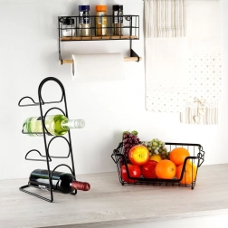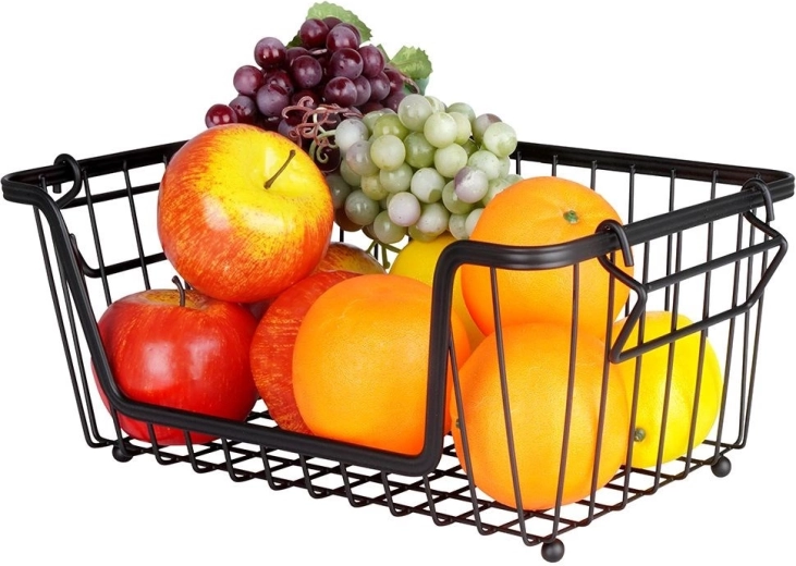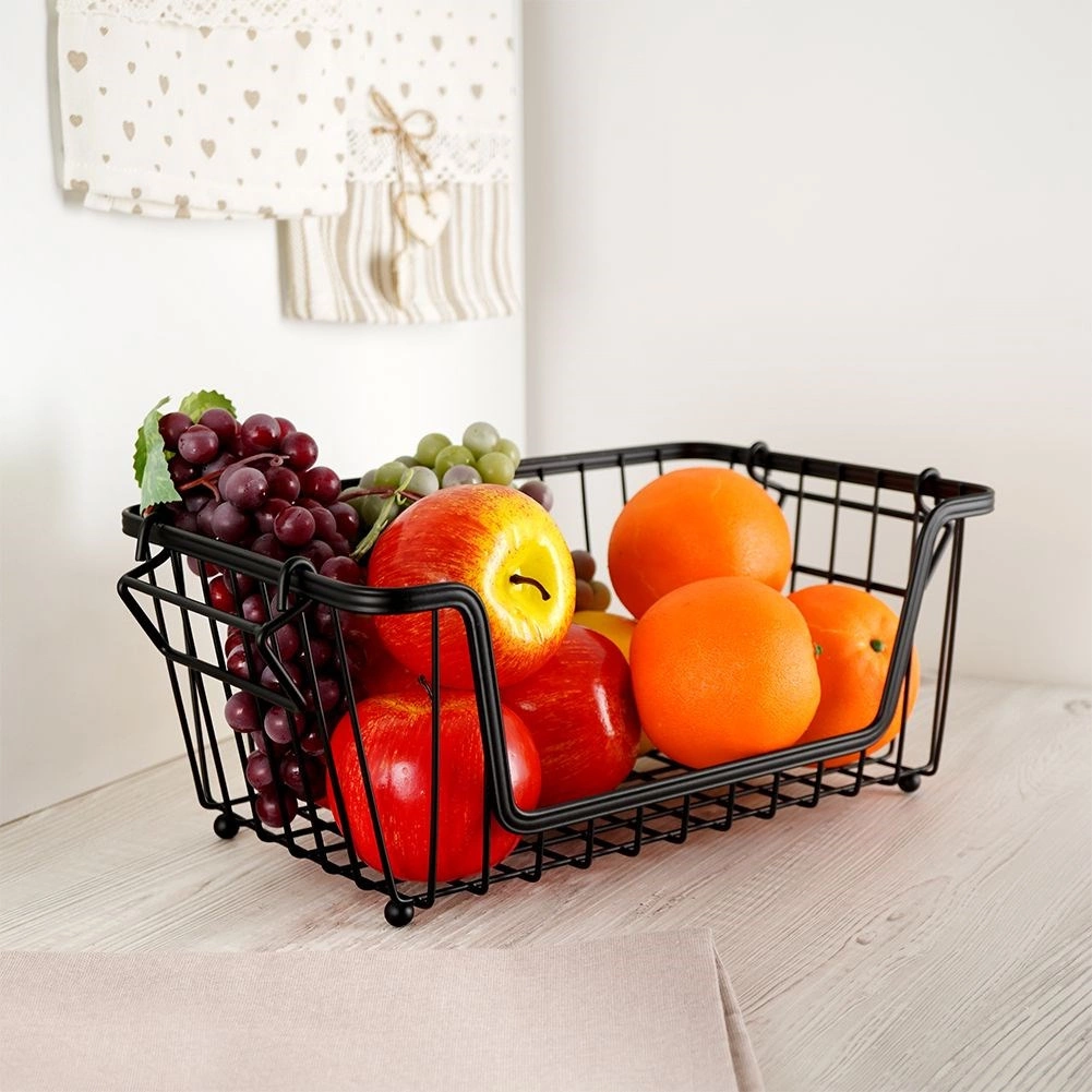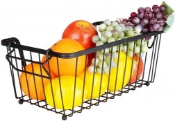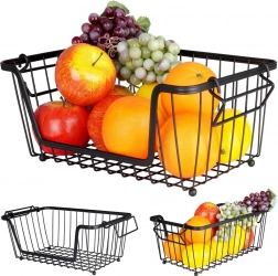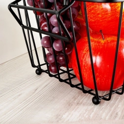 Elegantný kôš na ovocie a zeleninu je ideálnou voľbou pre prehľadné a vzdušné skladovanie na pracovnej doske či polici. Oceľová konštrukcia s práškovým lakom v čiernej farbe zaručuje vysokú odolnosť a dlhú životnosť, zatiaľ čo znížený predný okraj uľahčuje rýchly prístup k obsahu.