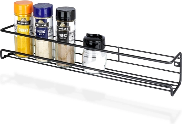 Praktická nástenná kovová korenička v elegantnej čiernej farbe šetrí miesto na linke a udrží vaše koreniny aj drobnosti prehľadne na jednom mieste. Vďaka kompaktným rozmerom 40 × 6,5 × 6,5 cm sa hodí do každej kuchyne, kúpeľne či predsiene. Odolná kovová konštrukcia, jednoduchá montáž a univerzálne využitie v modernom loft štýle.