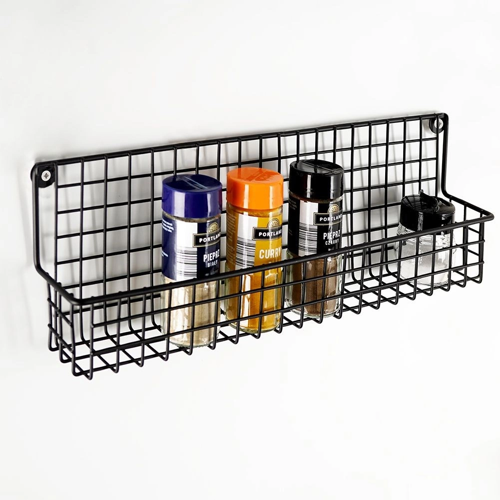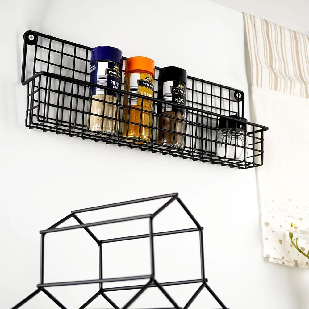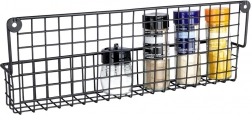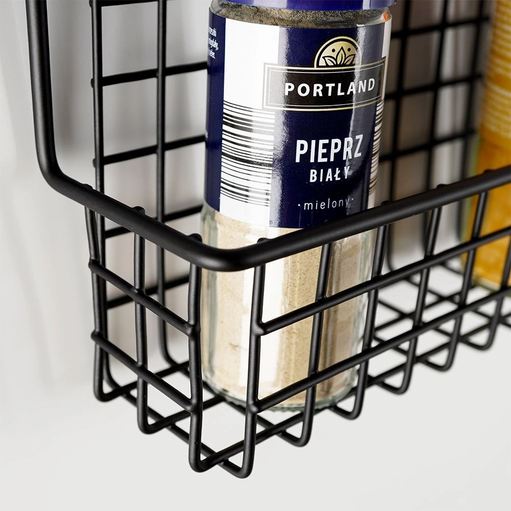 Odolný čierny kov s drôteným košom drží koreničky aj malé fľaštičky bezpečne na mieste a uľahčuje ich prehľadné uloženie.