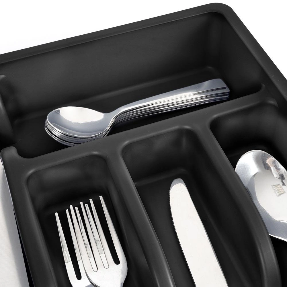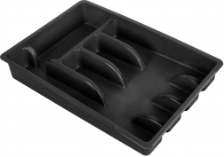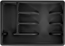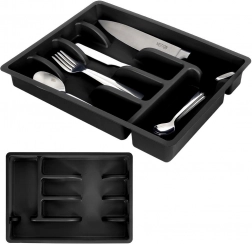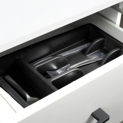 Vyrobené z kvalitného, odolného plastu v elegantnej čiernej farbe. Materiál je hladký, hygienický a ľahko sa čistí – stačí vlhká handrička alebo umývačka riadu. Vďaka univerzálnym rozmerom padne do väčšiny zásuviek a okamžite premení chaos na prehľadné úložisko.