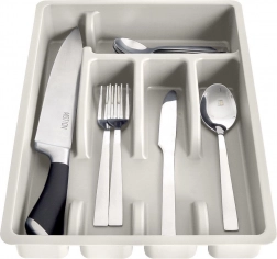 Tri sekcie na príbory, samostatná priehradka na lyžičky a dlhá časť na kuchynské náradie udržia všetko prehľadne na svojom mieste.