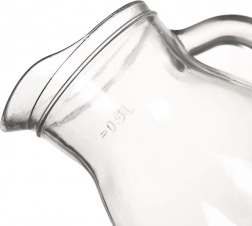 Elegantný sklenený džbán s objemom 500 ml (celková kapacita 600 ml) s praktickým výlevkom a pohodlným uchom. Vyrobený z odolného číreho skla, vhodný do umývačky riadu aj mikrovlnnej rúry. Ideálny na vodu, džús, víno, mlieko aj omáčky a skvele doplní každý stôl.