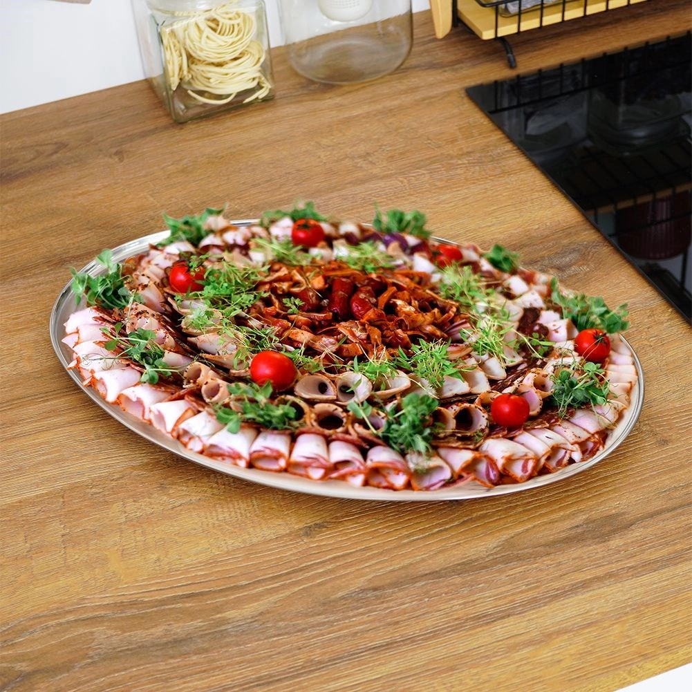 Elegantná sada troch oválnych podnosov z nehrdzavejúcej ocele na štýlové servírovanie. Ideálne na predjedlá, kanapky, ovocie aj dezerty. Vďaka leštenému povrchu, zvýšenému okraju a odolnému prevedeniu sú skvelé do domácnosti aj gastronómie.