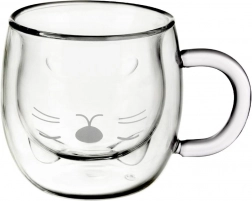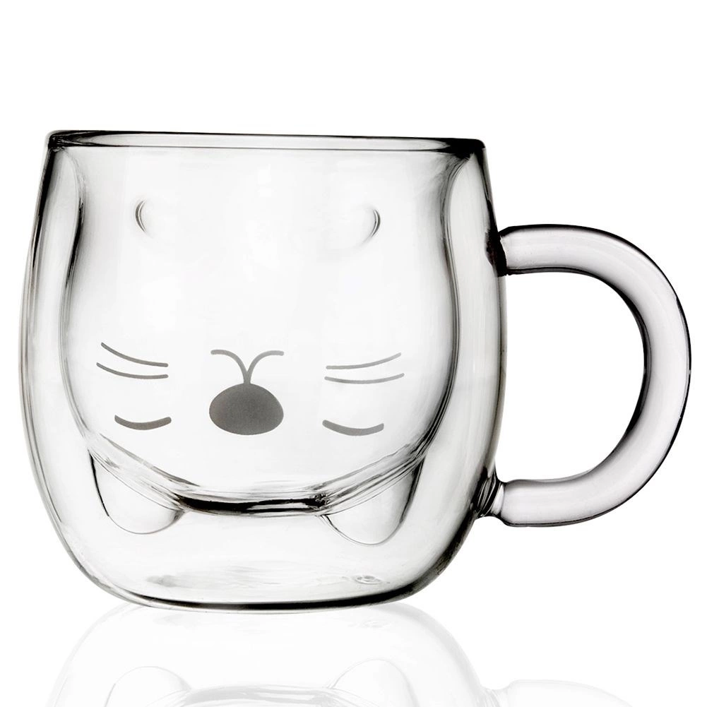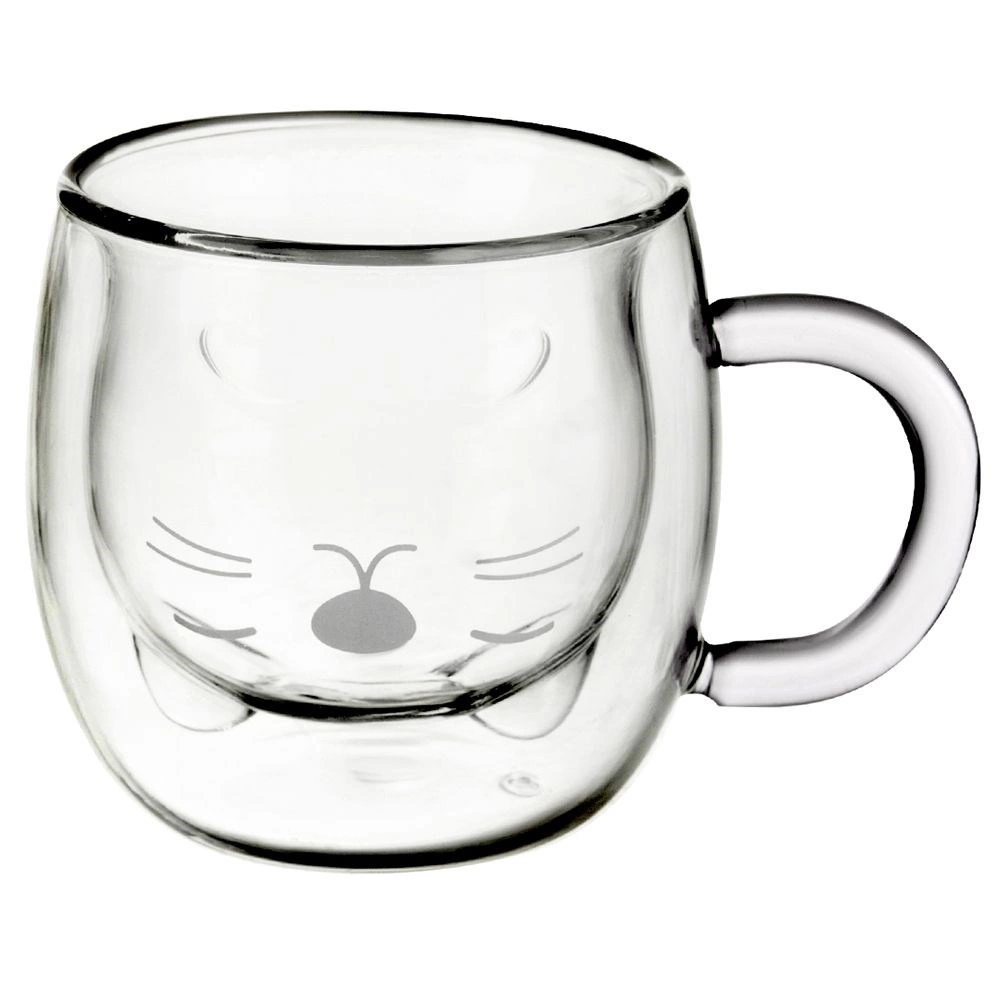Štýlový termo pohár s motívom mačky a objemom 270 ml prináša dvojitú stenu pre skvelú tepelnú izoláciu, je z ľahkého borosilikátového skla a hodí sa na kávu, čaj, kakao aj mlieko. Vďaka pohodlnému ušku sa príjemne drží a nápoje v ňom vyzerajú mimoriadne efektne.