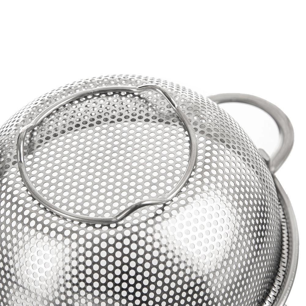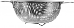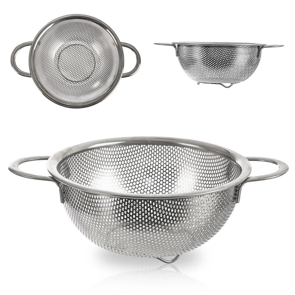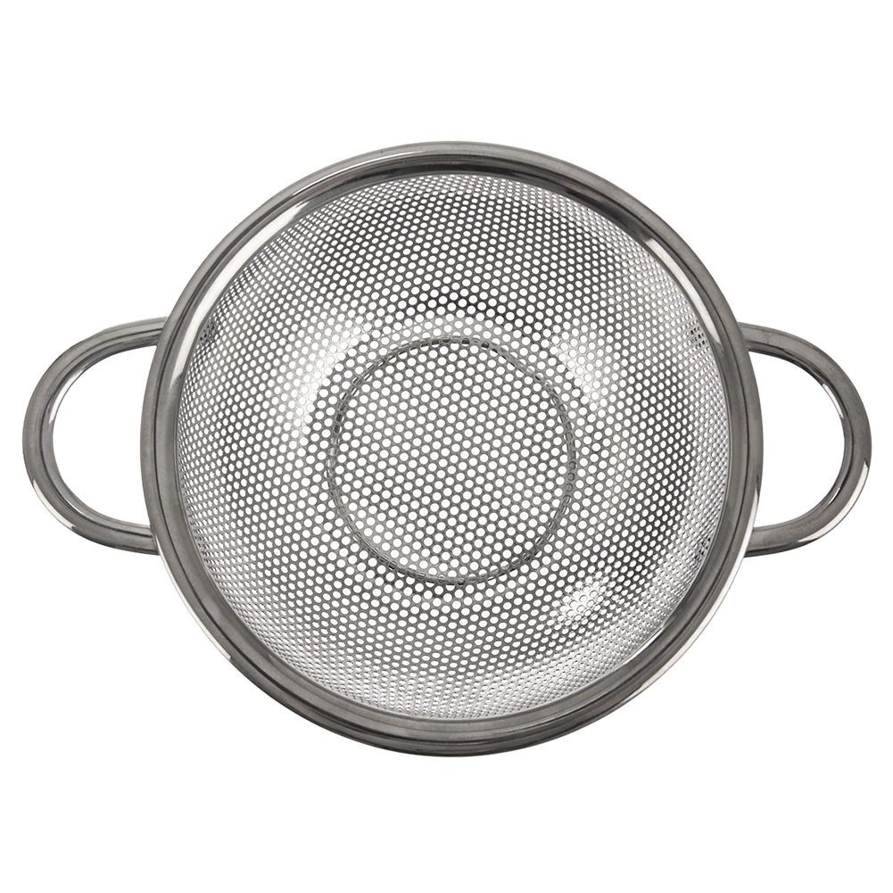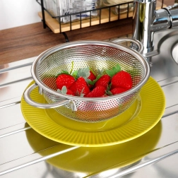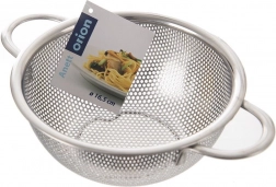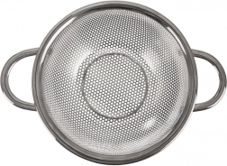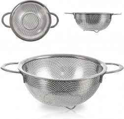 Univerzálny nerezový cedník v tvare misky s priemerom 16,5 cm a rozšíreným okrajom 22,5 cm je ideálny na umývanie ovocia a zeleniny, scedenie cestovín aj ryže. Vďaka dvom pohodlným úchytom a stabilnému podstavcu sa s ním ľahko manipuluje, je odolný a vhodný do umývačky riadu.