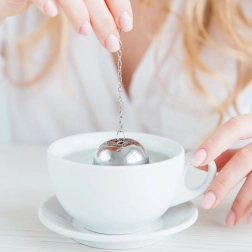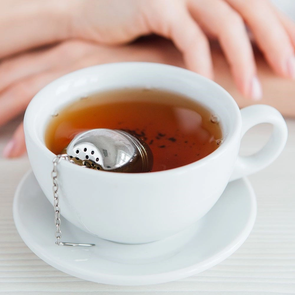 Sitko má kompaktný guľovitý tvar a bezpečné zacvaknutie, ktoré bráni nechcenému otvoreniu. Reťazka s háčikom uľahčuje manipuláciu a zavesenie na hrnček, pohár alebo kanvicu. Využijete ho aj pri varení – na bylinky a korenie do polievok či vývarov.