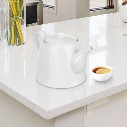 Obľúbená a praktická kanvica z bieleho porcelánu skvele doplní váš jedálenský servis a umožní pripraviť väčšie množstvo obľúbeného nápoja pre rodinu aj hostí. Vďaka pevnému uchu a ergonomickej výlevke je nalievanie plynulé a bez kvapkania, zatiaľ čo dobre padnúce veko pomáha udržať nápoj dlhšie teplý.