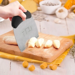 Táto multifunkčná špachtľa kombinuje rozhrňovač, sekáčik a stierku v jednom. Skvele sa hodí na prácu s cestom, krémami aj fondánom a uľahčí vám prenášanie, porcovanie aj vyrovnávanie povrchov. Vďaka ostrému okraju ľahko nasekáte orechy, cibuľu alebo zeleninu.