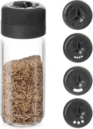 Elegantná korenička z číreho skla s otočným viečkom ponúka tri nastavenia: úplne zatvorené, plne otvorené a jemné otvory pre kontrolované sypanie. Transparentné telo umožní na prvý pohľad vidieť obsah aj jeho množstvo, takže budete mať svoje obľúbené koreniny vždy po ruke.