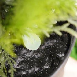 Stromček je usadený v stabilnom čiernom kvetináči, ktorý dodáva dekorácii moderný vzhľad a zabezpečuje bezpečné umiestnenie. Hodí sa do klasických aj moderných interiérov a možno ho doplniť o drobné ozdoby či svetielka.