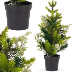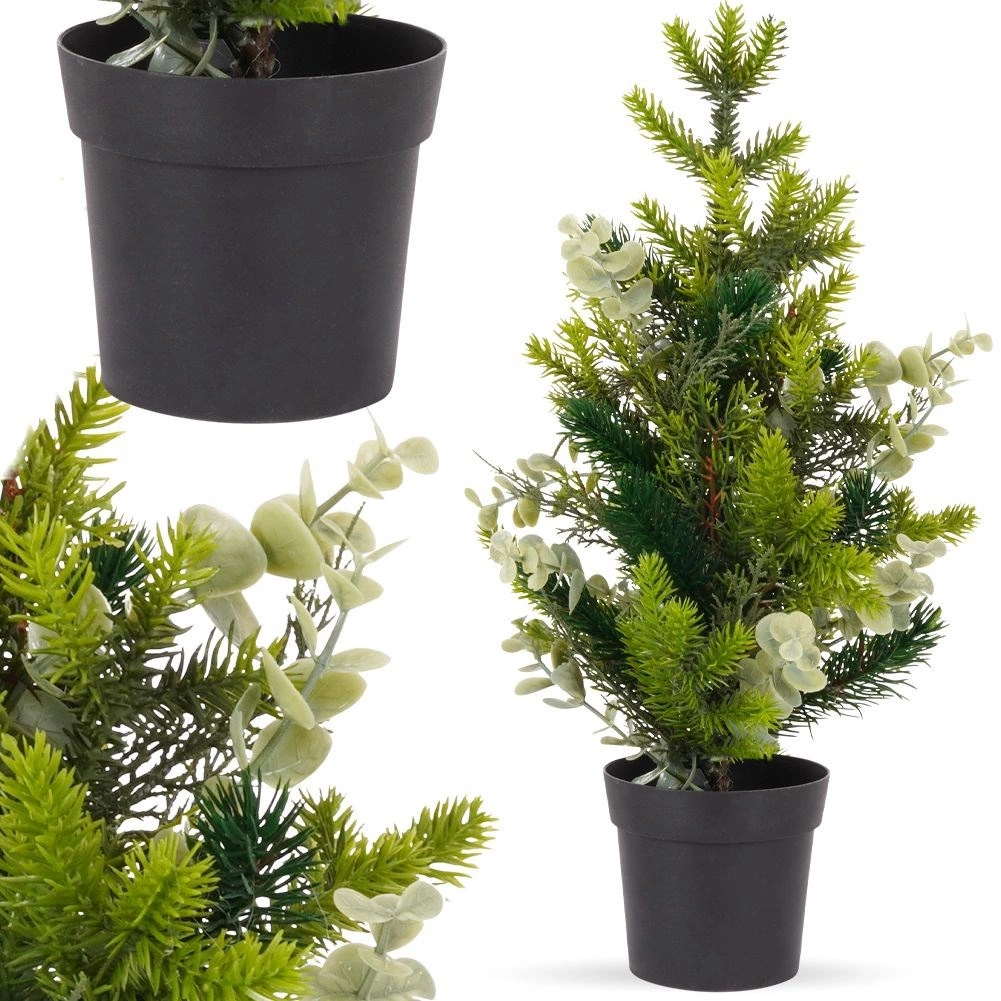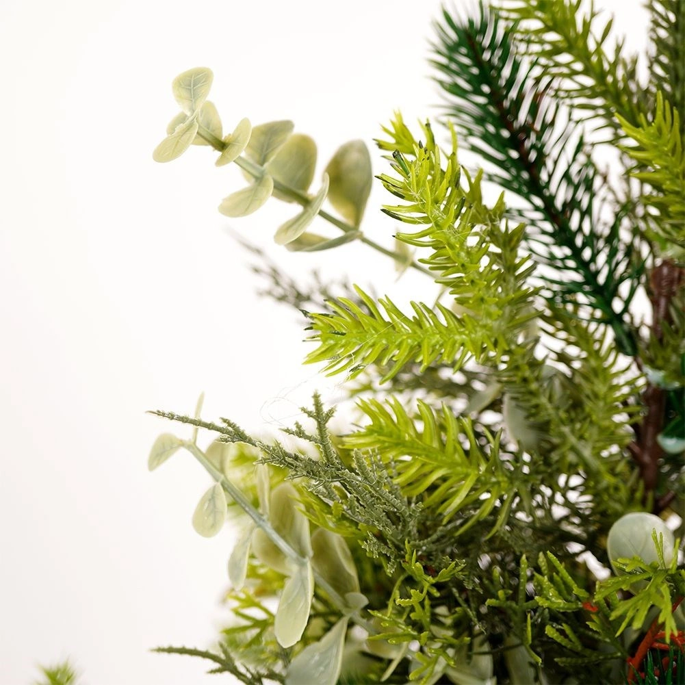 Elegantný umelý stromček s eukalyptovými lístkami vynikne na stole, komode aj pracovnom stole. Vďaka kvalitnému prevedeniu pôsobí prirodzeným dojmom a prinesie do domova čaro Vianoc bez starostí s opadávaním ihličia.