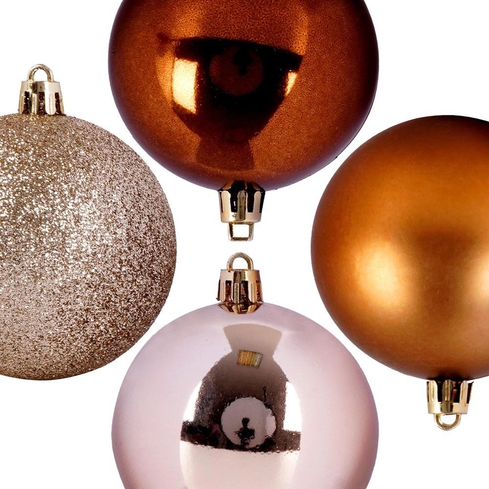 Lesklé, matné a brokátové gule vytvárajú na stromčeku hĺbku, odlesky a jemný trbliet pre skutočne sviatočnú atmosféru.