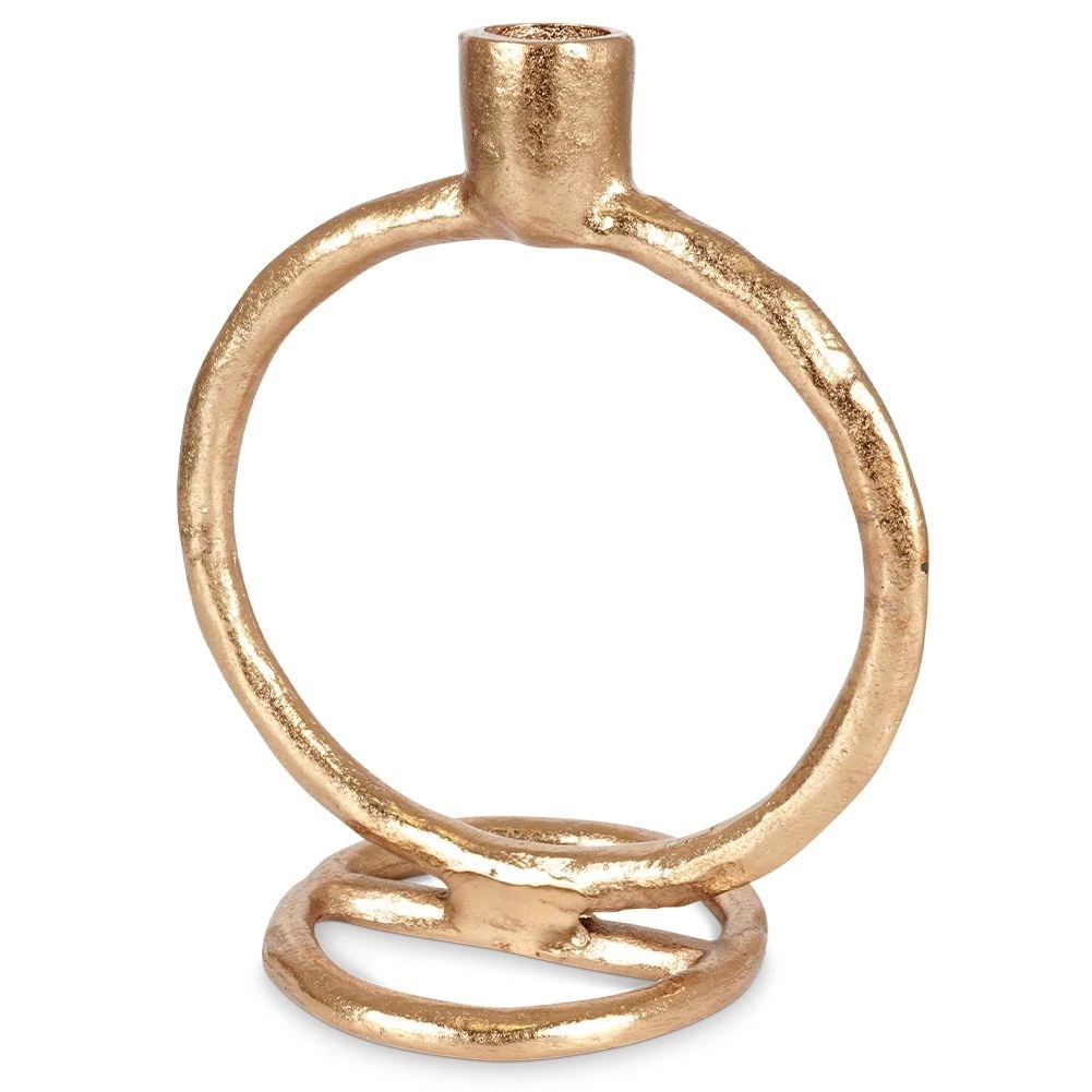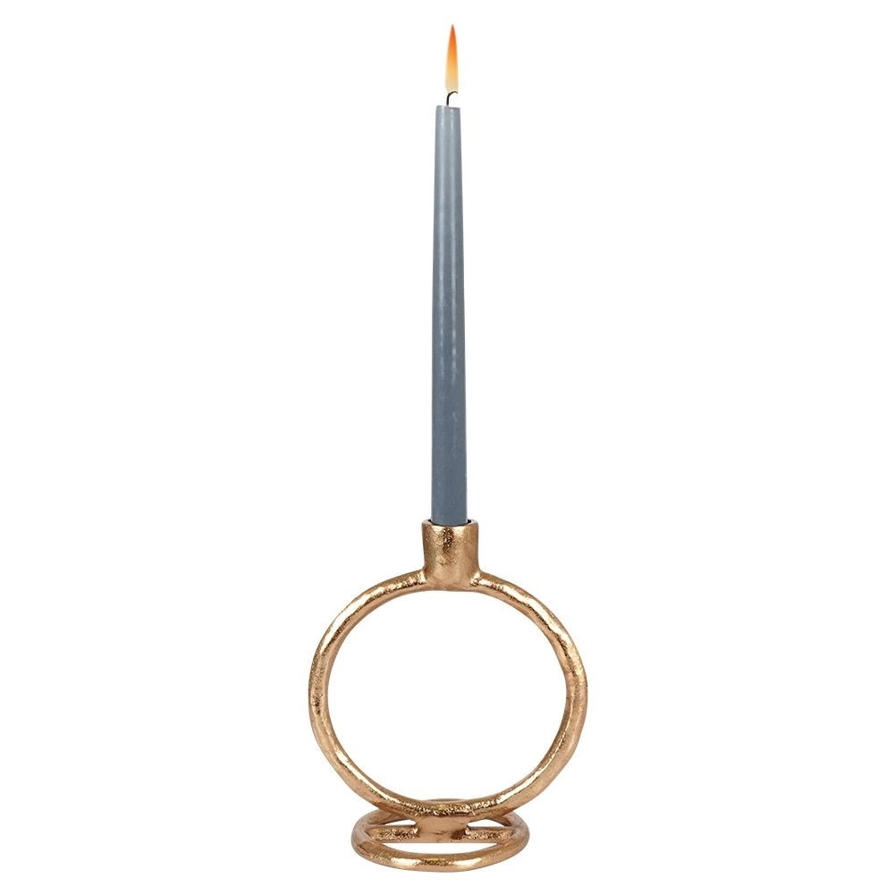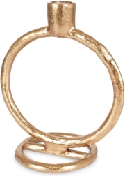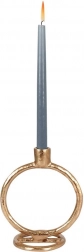 Elegantný svietnik na jednu dlhú sviečku je vyrobený z kvalitného hliníka v zlatej farbe. Vďaka pevnej kvalite spracovania a okrúhlej stabilnej základni bezpečne podrží sviečku a zároveň sa stane výrazným dizajnovým prvkom vášho domova.