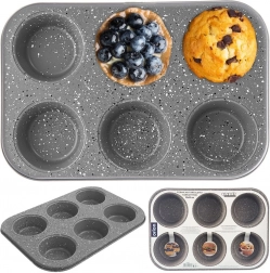 Objavte spoľahlivú formu na muffiny GRANDE, ktorá umožní upiecť naraz 6 kusov naozaj veľkých muffinov. Vďaka nepriľnavej granitovej vrstve sa cesto nepripáľa a pečivo ľahko vyberiete bez trhania. Robustná uhlíková oceľ rozvádza teplo rovnomerne pre perfektne prepečené cesto.