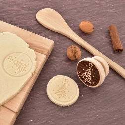 Praktická drevená pečiatka na sušienky so vzorom stromčeka s priemerom 5,5 cm a výškou 3 cm. Z bukového dreva, pohodlná do ruky a vhodná na ozdobenie domácich sušienok, perníčkov aj fondánu. Jednoduché používanie, efektný motív a prírodný materiál. Neodporúča sa umývať v umývačke.