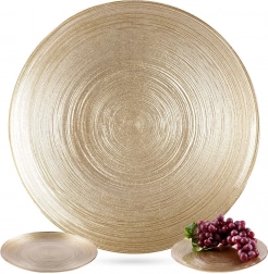 Štýlový zlatý dezertný tanier dodá vašej tabuli šmrnc pri každej príležitosti. Kvalitné sklo so zamatovo matným dnom a jemnou štruktúrou vodorovných prúžkov vytvára efektný vzhľad, ktorý skvele ladí s rôznymi typmi stolového riadu.