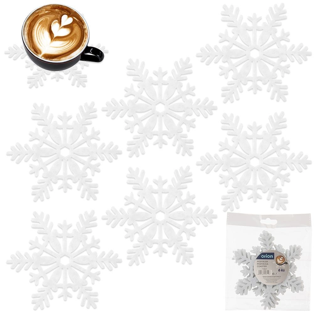 Elegantné filcové podložky v tvare snehových vločiek ochránia váš stôl a dodajú slávnostnú atmosféru. Balenie obsahuje 6 kusov s rozmermi 13,5 × 12 cm. Sú praktické, dekoratívne a vďaka kvalitnému materiálu odolné. Vhodné na horúce aj studené nápoje a tiež ako podložky pod nekvapkajúce sviečky.