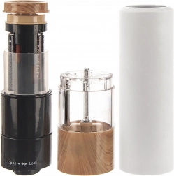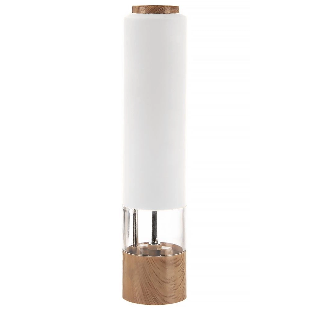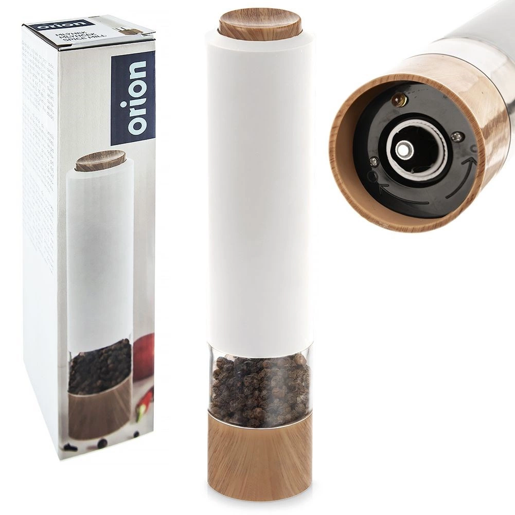 Moderný elektrický mlynček na soľ, korenie a ďalšie koreniny s výškou 23 cm kombinuje elegantný dizajn s praktickými funkciami. Ponúka keramický mlecí mechanizmus pre presné mletie, plynulú reguláciu hrubosti, LED osvetlenie na kontrolu dávky a pohodlné ovládanie jednou rukou. Bielu konštrukciu s dreveným dekorom skvele doplní každú kuchyňu.