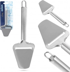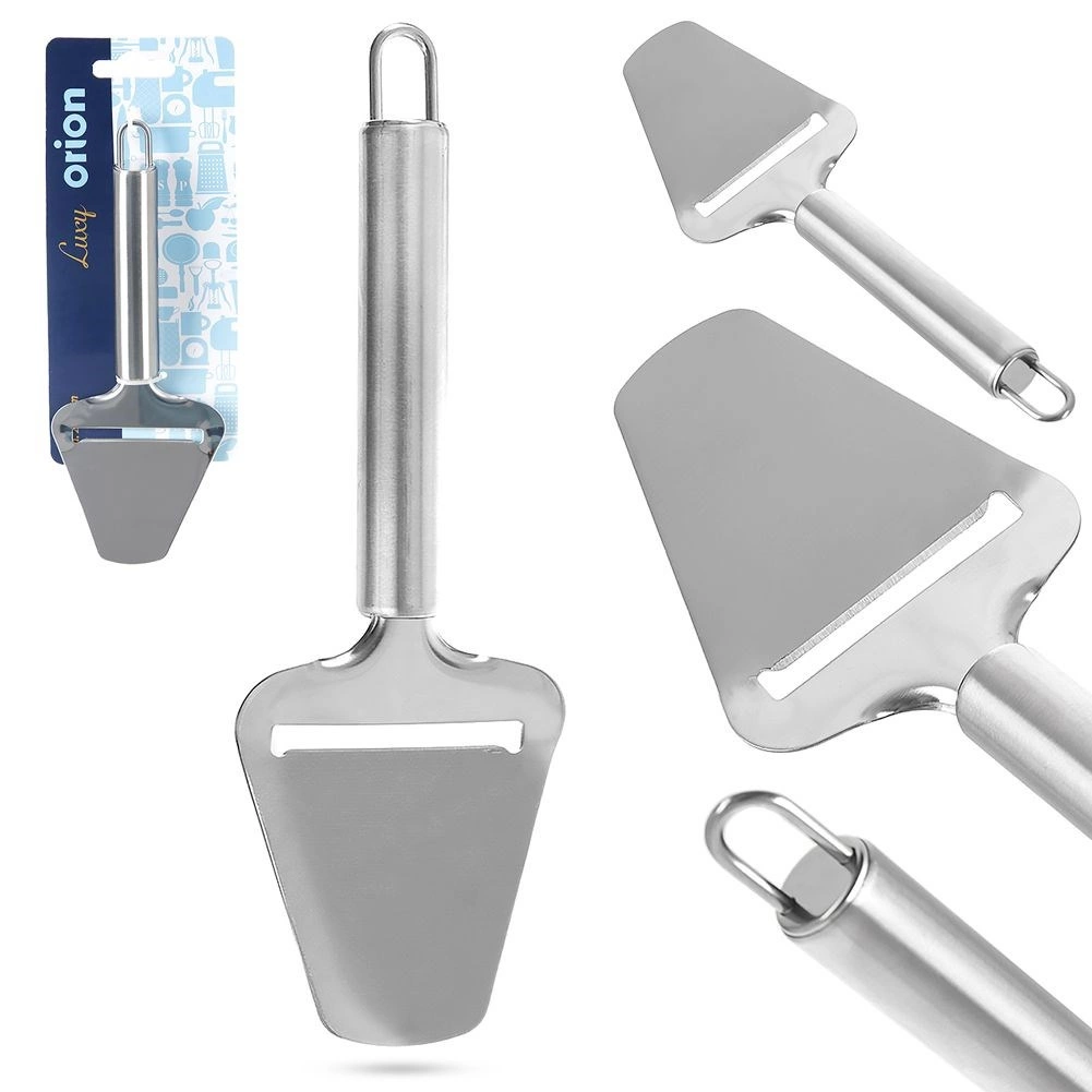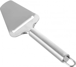Praktický nerezový nôž–škrabka na syr na rýchle a presné krájanie tvrdých syrov na tenké plátky. Ergonomická rukoväť zaisťuje pohodlné a bezpečné používanie, odolné prevedenie z nehrdzavejúcej ocele garantuje dlhú životnosť a závesné očko uľahčí skladovanie. Vhodné do umývačky riadu.