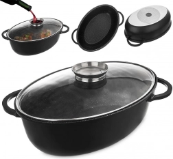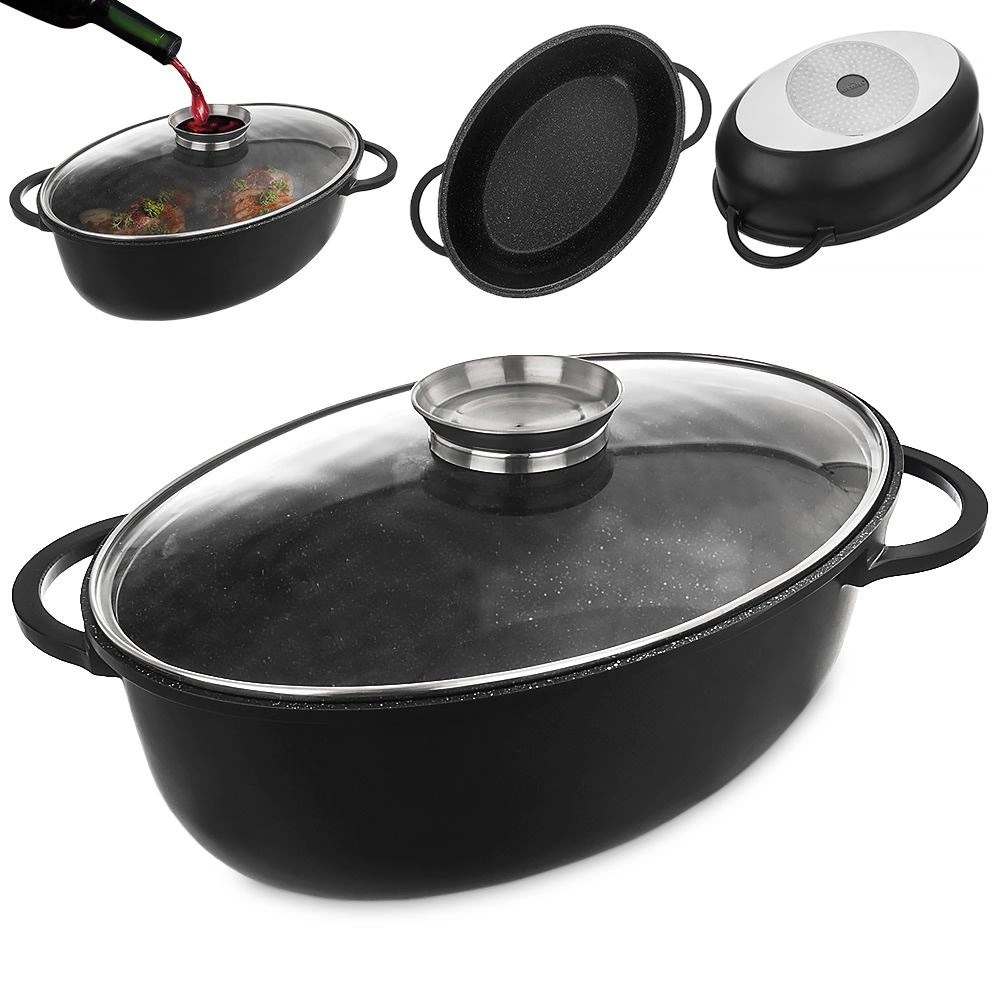 Tento oválny pekáč je ideálny na pečenie, dusenie aj zapekanie väčších porcií mäsa, zeleniny a rodinných jedál. Vďaka nepriľnavej granitovej vrstve PFLUON GRANIT pripravíte jedlá s menším množstvom oleja a čistenie je rýchle a jednoduché. Sklenené veko umožňuje kontrolu priebehu varenia a integrovaný dávkovač vo veku uľahčí podlievanie vodou, vínom či omáčkou bez nutnosti veko zdvíhať.