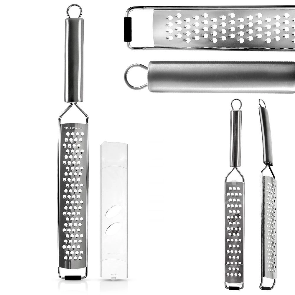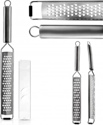 Ostré perforácie zabezpečia jemné a rovnomerné výsledky pri strúhaní zeleniny, tvrdého syra, čokolády alebo korenín, ako je zázvor, škorica či muškátový oriešok. Praktické ochranné puzdro chráni ostrie aj ostatné náradie v zásuvke a uľahčuje skladovanie.