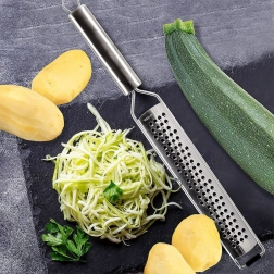 Univerzálne kuchynské strúhadlo z kvalitnej nehrdzavejúcej ocele je ideálne na každodennú prípravu jedál. Vďaka dlhej ergonomickej rukoväti skvele padne do ruky a umožní presné a rýchle strúhanie bez námahy. Protišmyková koncovka chráni hrnce a panvice pred poškrabaním, takže môžete strúhať priamo do nádoby.