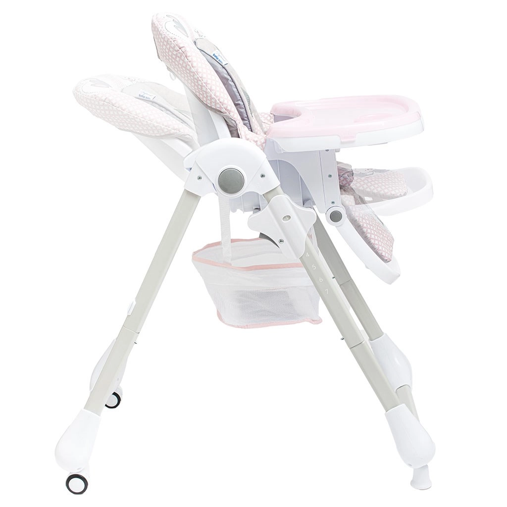 Jedálenská stolička BABY MIX Infant ružová spája pohodlie, bezpečie a jednoduchú údržbu v jednom. Vďaka 7-stupňovému nastaveniu výšky ju ľahko prispôsobíte výške stola aj rastu dieťaťa. Trojpolohové operadlo a dvojpolohová opierka nôh zaistia správnu ergonómiu pri kŕmení aj odpočinku. Praktický dvojitý, odnímateľný pultík poskytne priestor na jedlo aj hranie, zatiaľ čo spodný košík udrží všetko potrebné po ruke.