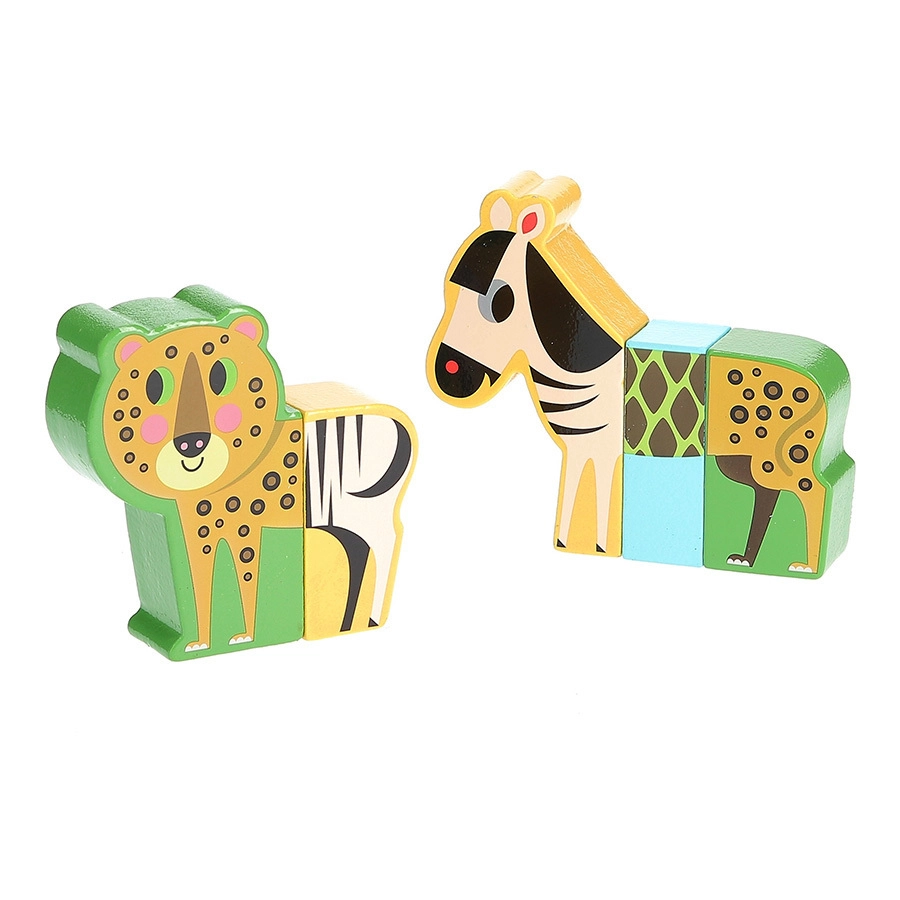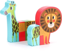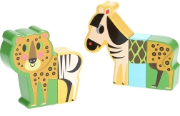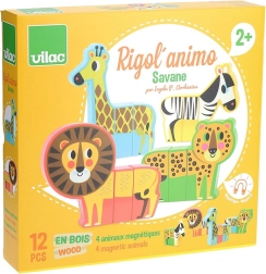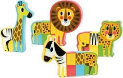 Drevené puzzle Veselé safari prinášajú deťom od 2 rokov zábavu trochu inak: každé zvieratko je zložené z masívnych dielikov so skrytými magnetmi, ktoré k sebe hladko priľnú. Dieliky možno vymieňať medzi jednotlivými zvieratami a vytvárať tak zábavné „hybridy“, ktoré podnecujú fantáziu a zvedavosť.