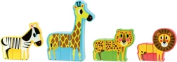 Štyri safari zvieratká s magnetickými dielikmi možno medzi sebou ľubovoľne kombinovať – perfektné na rozvoj kreativity a predstavivosti.
