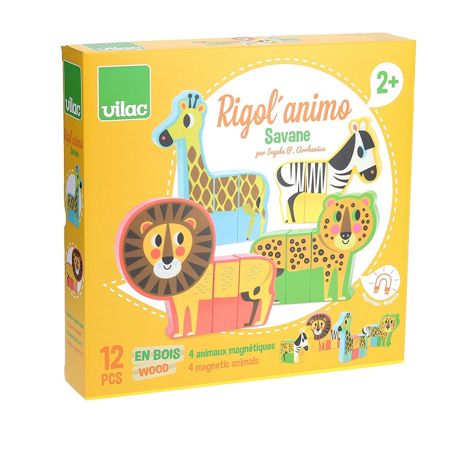 Objavte kreatívnu zábavu s drevenými puzzle z kolekcie Veselé safari od značky VILAC. Štyri farebné zvieratká s magnetickými odnímateľnými dielmi možno ľubovoľne miešať a skladať do veselých kombinácií. Hračka podporuje jemnú motoriku, kreativitu a rozpoznávanie farieb a tvarov, navyše s očarujúcou ilustráciou od Ingely P. Arrhenius.
