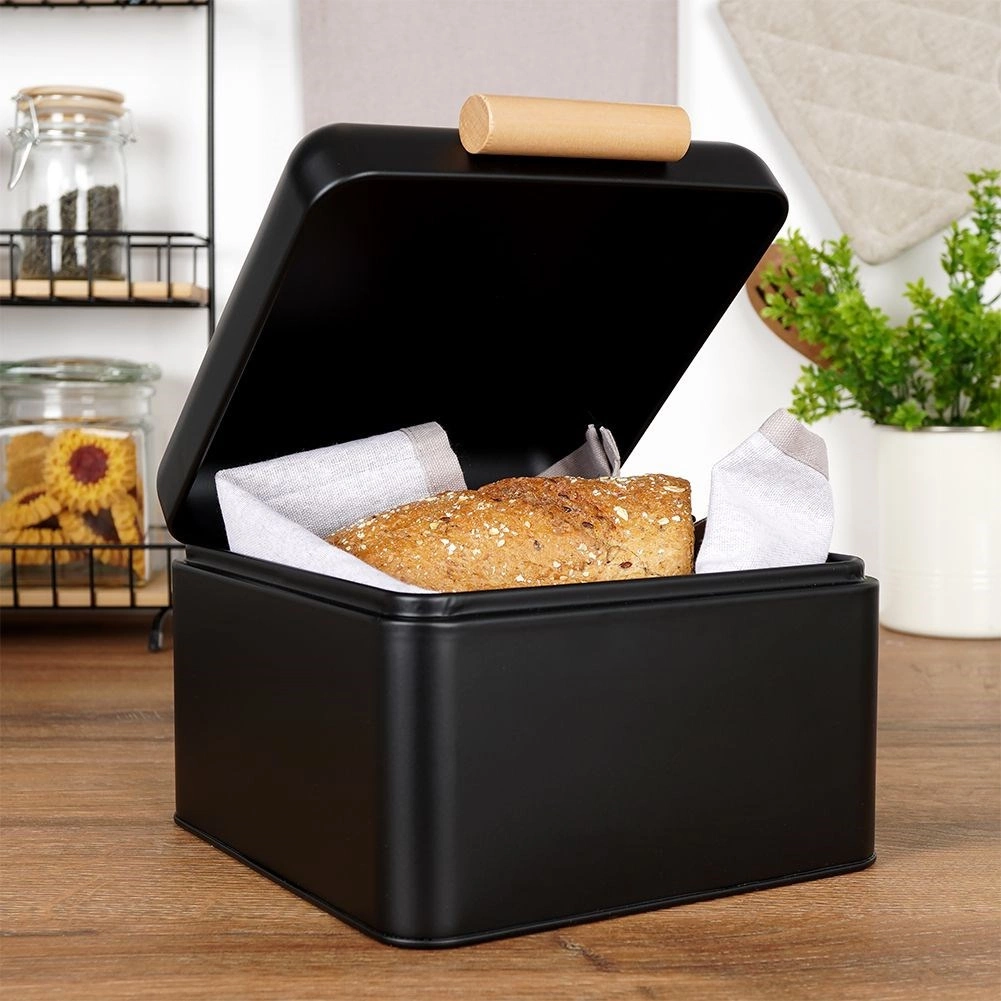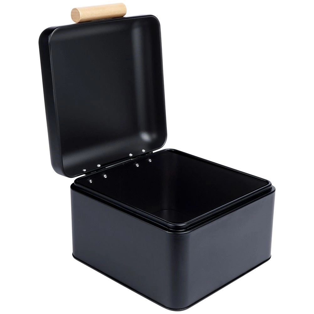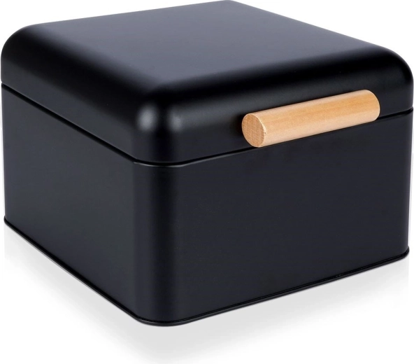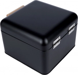Elegantný čierny chlebník z kvalitného kovu udrží vaše pečivo dlhšie čerstvé a vždy po ruke. Kompaktné rozmery šetria miesto, praktické veko na pántoch s dreveným madlom zaručuje pohodlné otváranie a zatváranie. Minimalistický dizajn sa hodí do každej kuchyne a dodá jej moderný vzhľad.