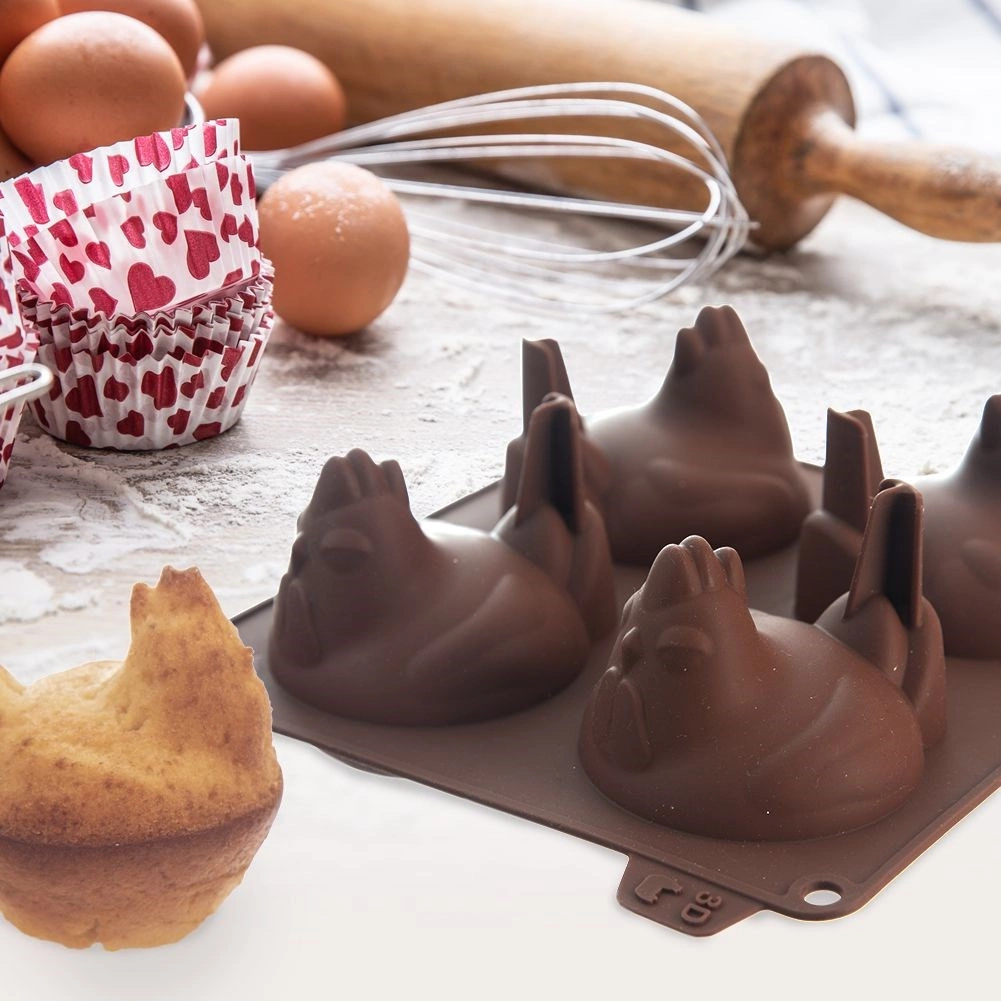 Štyri hlboké dutiny vytvoria detailné 3D sliepočky s hladkým povrchom a čistými kontúrami – ideálne pre čokoládu, cestá aj želé.