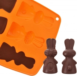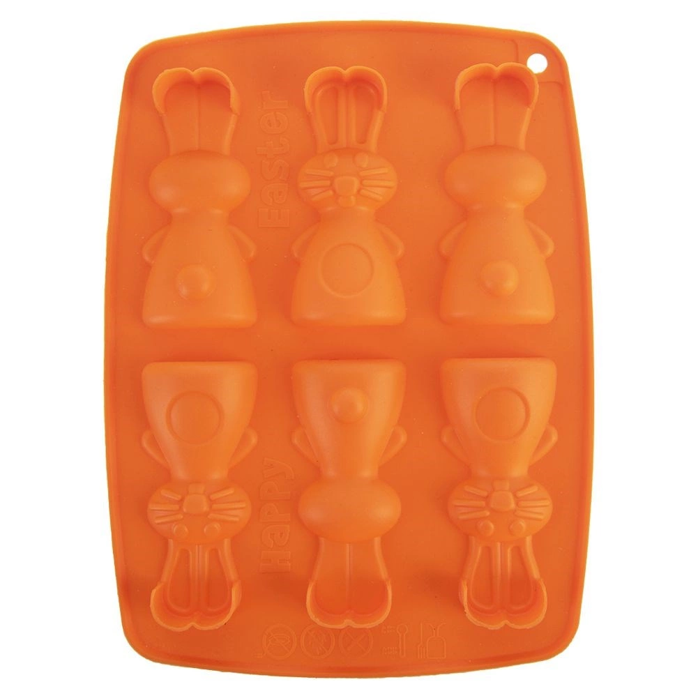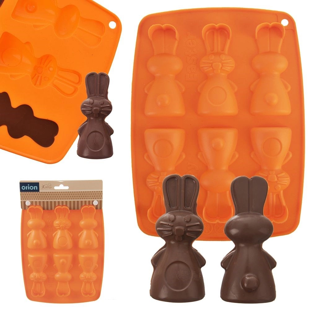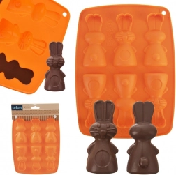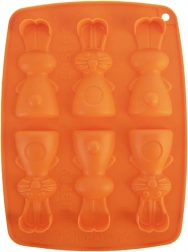 Silikónová forma v oranžovej farbe umožní pohodlne pripraviť lahodné sušienky, pralinky alebo čokoládky v tvare zajačikov. Vďaka nepriľnavému a pružnému silikónu hotové dobroty jednoducho vyberiete bez poškodenia tvaru. Forma nenasiakne pachy ani chute a šetrí miesto pri skladovaní.