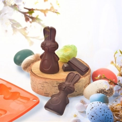 Rozmer formy je 22 × 18 cm a každá dutina zajačika má približne 9 × 5 cm. Materiál je tepelne odolný od -40 °C do +220 °C, takže formu využijete v rúre, mikrovlnke aj mrazničke. Údržba je jednoduchá – stačí opláchnuť alebo vložiť do umývačky riadu.