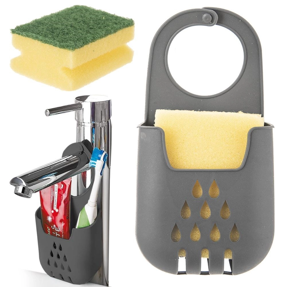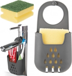 Praktický závesný držiak na hubku s jednoduchým upevnením na kohútik udrží vašu kuchyňu čistú a prehľadnú. Vďaka odtokovým otvorom hubka rýchlo schne, zostáva hygienická a vždy po ruke. Vyrobené z odolného materiálu v elegantnej sivej. Jednoduchá inštalácia, rýchle schnutie a úspora miesta pri dreze.
