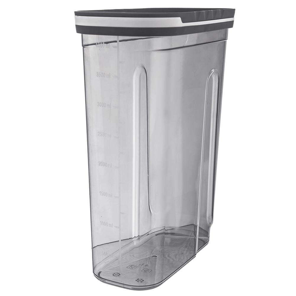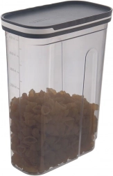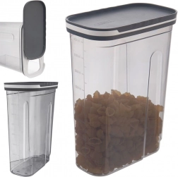 Udržte vo svojej kuchyni poriadok a čerstvosť. Tento vysoký, priehľadný zásobník s tmavosivým vekom ponúka ľahké dávkovanie vďaka vyklápacej výpusti a presnú kontrolu množstva zásluhou bočnej stupnice od 500 do 4000 ml. Profilovaný tvar sa skvele drží a umožní pohodlné sypanie bez rozsypania.