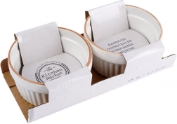 Elegantná sada dvoch porcelánových kokotiek s priemerom 9 cm a objemom 170 ml je ideálna na jednotlivé porcie dezertov aj slaných jedál. Vďaka kvalitnému materiálu sú žiaruvzdorné, vhodné do rúry, mikrovlnky, mrazničky aj umývačky. Biela glazúra s jemným béžovým lemom zabezpečí štýlové servírovanie a jednoduché čistenie.