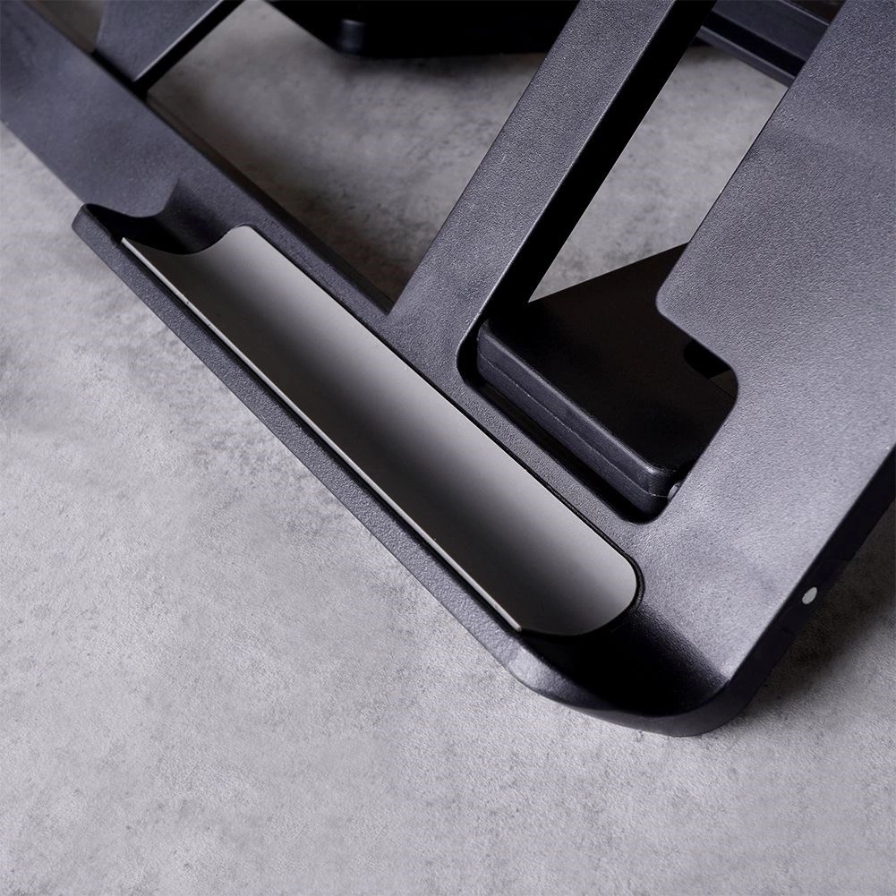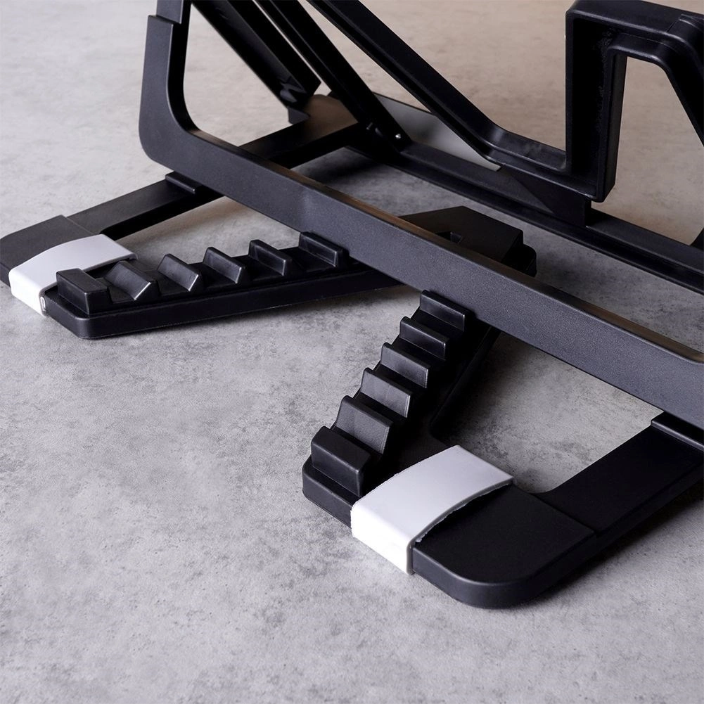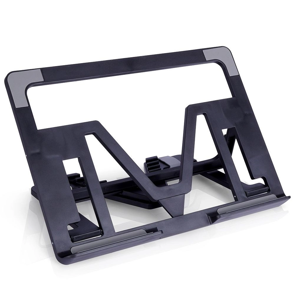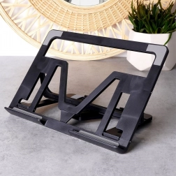 Stojan je vyrobený z kvalitného a odolného plastu s pevnými dielmi z ABS, ktoré zaisťujú stabilitu. Protišmykové podložky chránia zariadenie a zabraňujú posunu na stole. Po použití ho jednoducho zložíte naplocho – perfektné na prenášanie aj skladovanie.