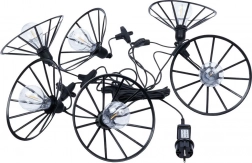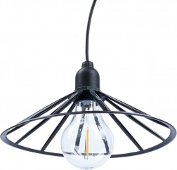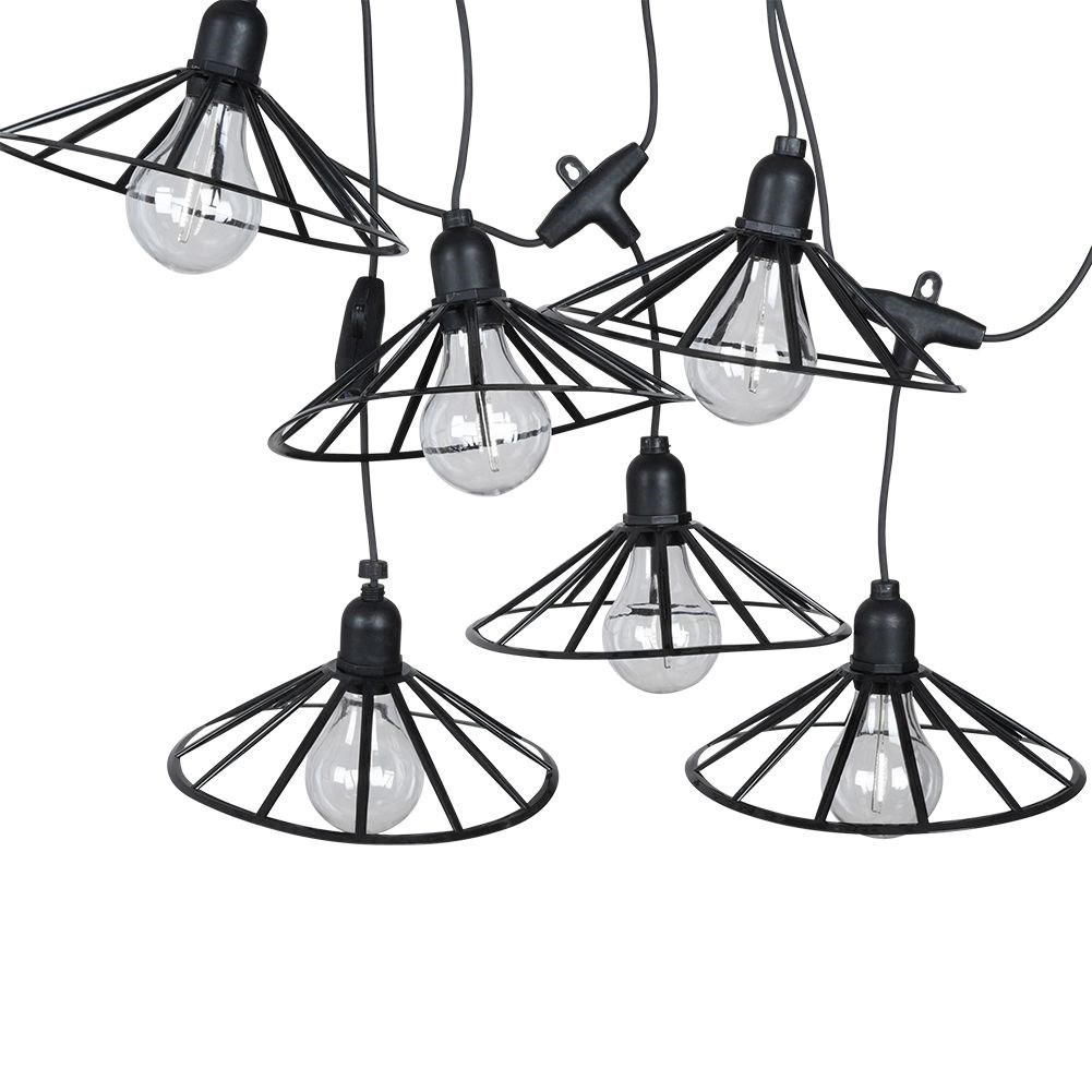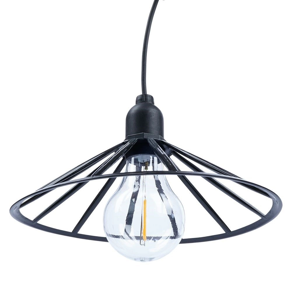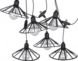 Šesť čírych LED žiaroviek v čiernych kovových klietkach vytvára príjemné teplé svetlo a pôsobivý dekoratívny efekt.