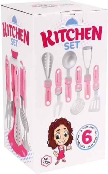 Ak ste milovníkom dizajnových vecí, potom vám doma nesmie chýbať tento originálny stojan s kuchynským náradím pre malé gazdinky. Nevyhnutný doplnok pre všetky malé kuchárky a pomocníčky v domácnosti alebo pre dievčatká, ktoré by rady uvarili niečo dobré svojim bábikám. Súprava obsahuje 6 ks náradia spolu s praktickým stojanom, takže budete mať všetko po ruke. Všetko je vyrobené z kvalitného a nezávadného plastu. Vhodné pre deti od 3 rokov.