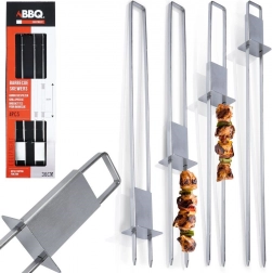Praktická sada 4 kusov dvojitých špízov s dĺžkou 36 cm na jednoduché grilovanie mäsa aj zeleniny. Vďaka dvom hrotom držia suroviny pevne a nepretáčajú sa. Vyrobené z kvalitnej nerezovej ocele, vhodné na opakované použitie, s pohodlnými plochými úchytmi pre isté otáčanie a manipuláciu. Ideálne na gril aj do rúry.