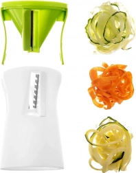 Jeden nástroj, tri druhy rezov pre kreatívne varenie – od šalátov po nízkosacharidové „špagety“. Ideálne pre cuketu, mrkvu a uhorku.