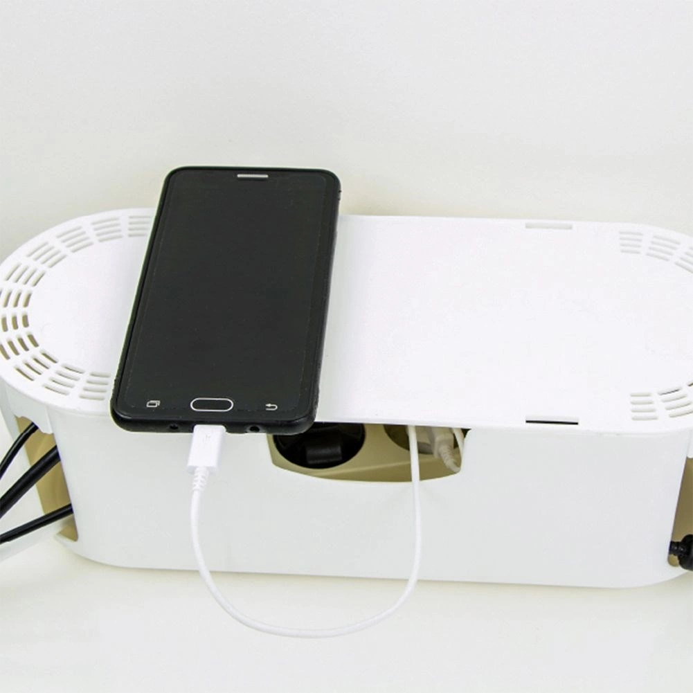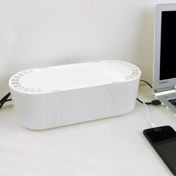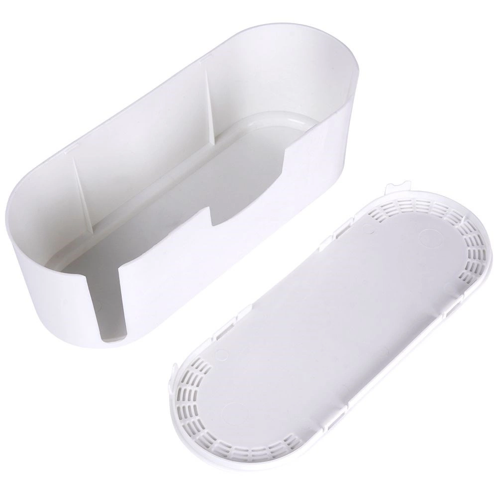 Udržte pracovný stôl aj obývačku dokonale upratané s týmto bielym organizérom na káble s rozmermi 32 × 12 × 11,5 cm. Skryje predlžovačku aj nabíjačky, zabráni zamotávaniu káblov, chráni pred prachom, vlhkosťou a mechanickým poškodením a zároveň vďaka vetracím otvorom vo veku zabezpečuje bezpečné odvetrávanie tepla. Bočné priechody uľahčujú správne vedenie káblov a zvyšujú bezpečnosť v domácnosti s deťmi a domácimi miláčikmi.