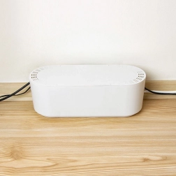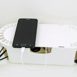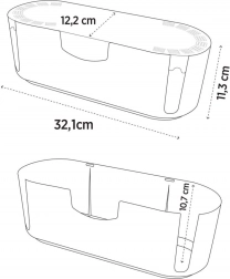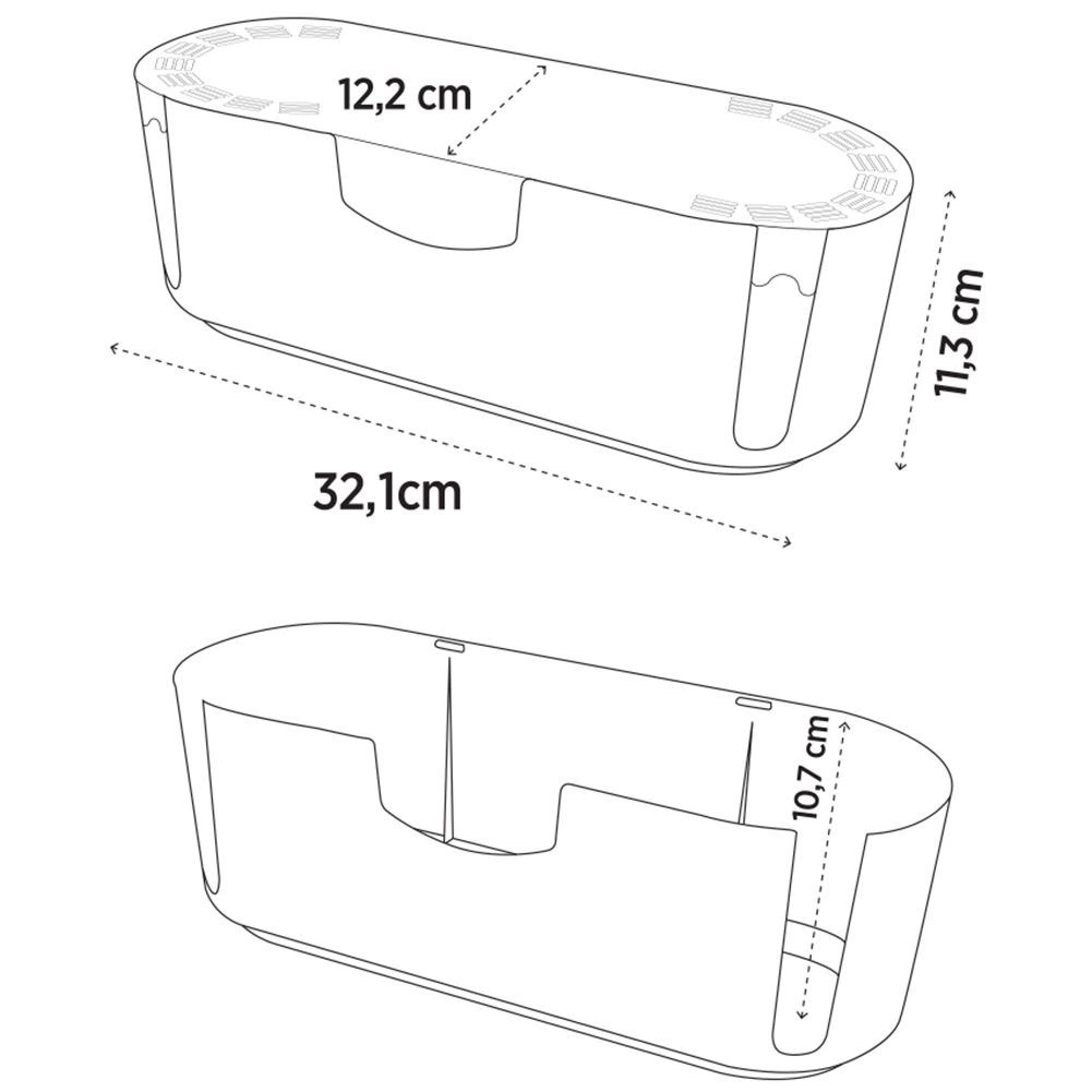 Vďaka kompaktným rozmerom 32 × 12 × 11,5 cm sa box zmestí na stôl aj na policu, pritom pojme bežnú lištu s viacerými zásuvkami. Hladký, ľahko umývateľný povrch v bielej farbe zapadne do moderného interiéru a chráni kabeláž pred prachom, vlhkosťou a mechanickým poškodením. Organizér zároveň zvyšuje bezpečnosť – obmedzuje prístup k exponovaným zásuvkám a káblom.
